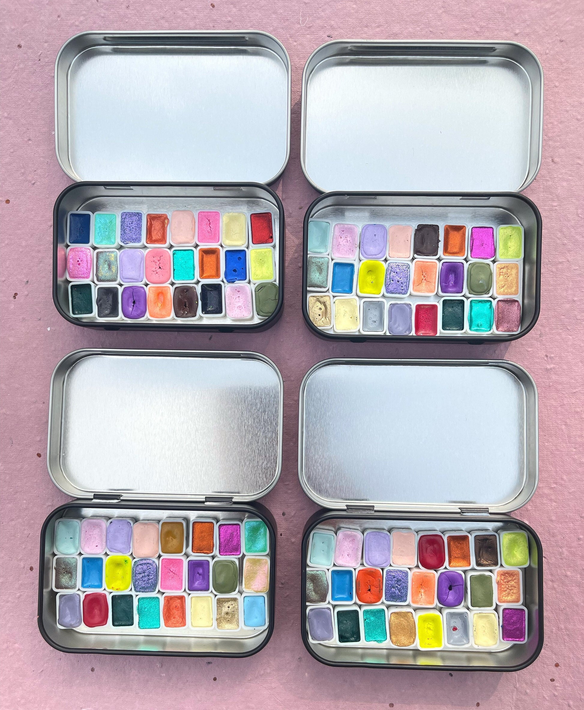 Handmade watercolour Tester Pack - Set of 24 Mini Pans - Metallic and Colorshift Sample pack | Chrome Watercolours | Calligraphy Ink Sample